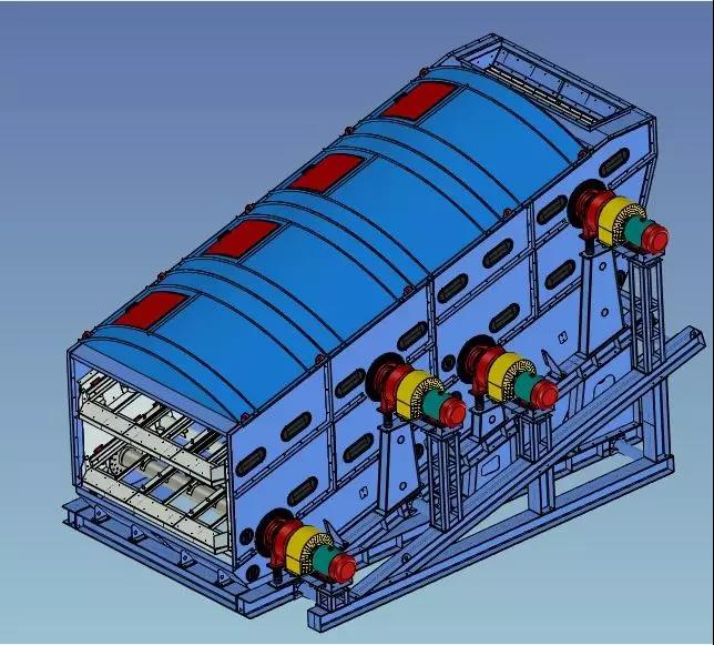 3、各個振動篩芯分節(jié)振動,可以實現(xiàn)各段篩面高頻低幅、低頻高幅的自由調節(jié),改變了傳統(tǒng)圓振篩同振源、同振幅、同振頻的振動方式。